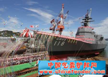 日本防卫省斥资726亿日元为海上自卫队建造的最新型“秋月”级通用导弹驱逐舰“冬月”号(舷号118)在三井造船公司玉野造船厂船用气囊下水,经过舾装和海试后,预计2014年3月正式服役。该舰是“秋月”级通用导弹驱逐舰的第4号舰, 全长151米,宽18.3米,深10.9米,标准排水量5100吨,满载排水量6800吨,动力装置为4座(双轴双桨推进)燃气涡轮发动机,橡胶气囊下水输出功率为64000马力,最大航速30节,定员200名。