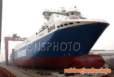 气囊下水金陵船厂10500吨滚装船成功